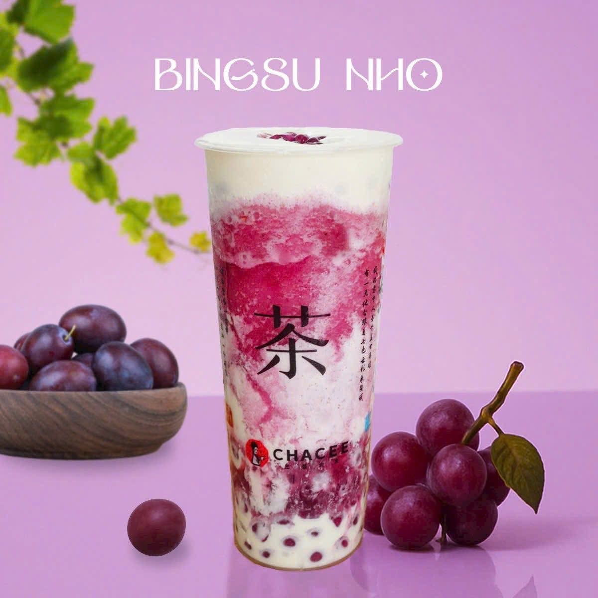 Bingsu nho là món tráng miệng mát lạnh với đá bào tuyết mềm mịn, kết hợp cùng nho tươi mọng nước và sốt nho ngọt dịu, tạo nên hương vị thanh mát, hấp dẫn và đầy sảng khoái.